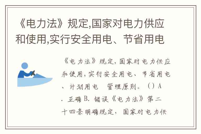 《电力法》规定,国家对电力供应和使用,实行安全用电、节省用电、计划用电旳管理原则。 ( ) A. 正确 B. 错误