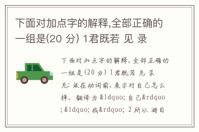 要准确解答这道文言文实词辨析题,需结合语境与古汉语语法特征逐一分析: