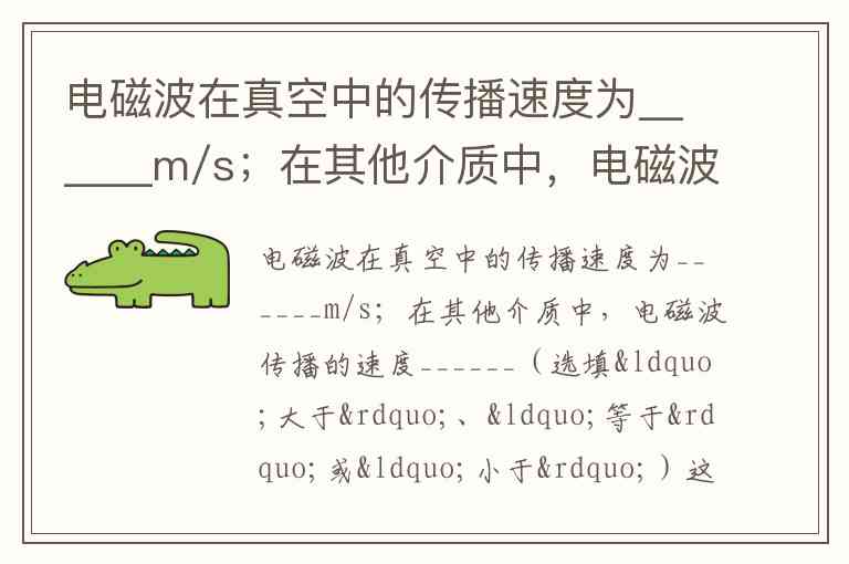 电磁波在真空中的传播速度为______m/s;在其他介质中,电磁波传播的速度______(选填“大于”、“等于”或“小于”)这个速度.