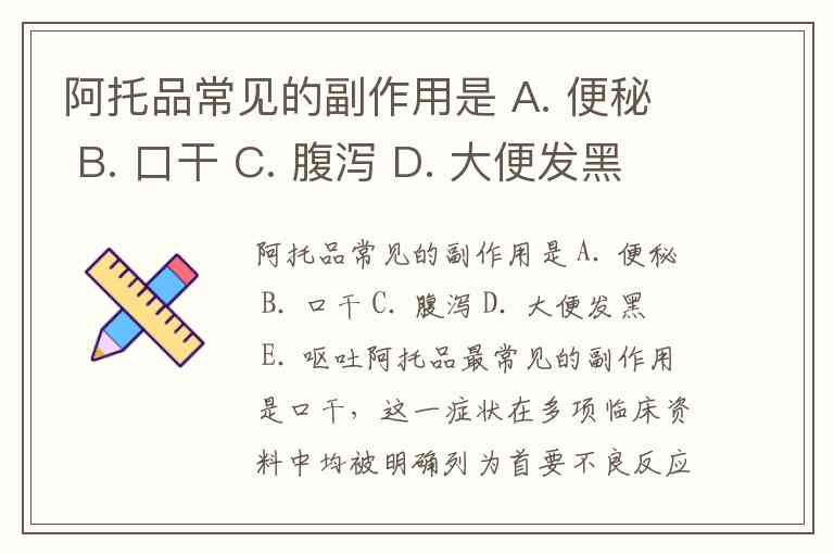 阿托品常见的副作用是 A. 便秘 B. 口干 C. 腹泻 D. 大便发黑 E. 呕吐