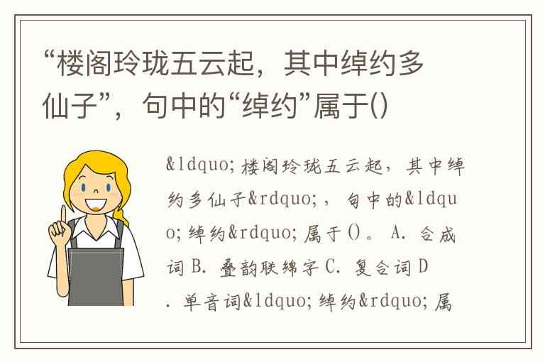 “楼阁玲珑五云起,其中绰约多仙子”,句中的“绰约”属于()。 A. 合成词 B. 叠韵联绵字 C. 复合词 D. 单音词