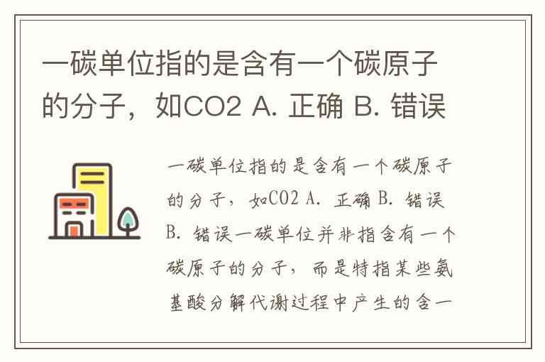 一碳单位指的是含有一个碳原子的分子,如CO2 A. 正确 B. 错误