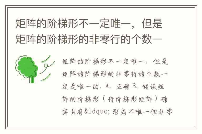 矩阵的阶梯形(行阶梯形矩阵)确实具有“形式不唯一但非零行个数唯一”的特性。
