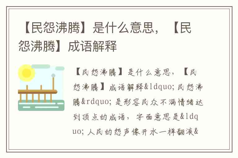 【民怨沸腾】是什么意思,【民怨沸腾】成语解释