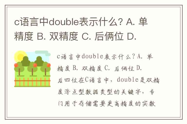 c语言中double表示什么? A. 单精度 B. 双精度 C. 后俩位 D. 后四位