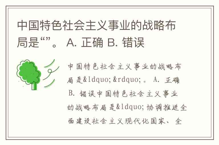 中国特色社会主义事业的战略布局是“”。 A. 正确 B. 错误