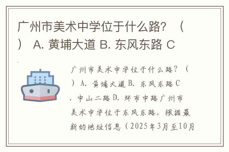 广州市美术中学位于什么路?() A. 黄埔大道 B. 东风东路 C. 中山二路 D. 环市中路