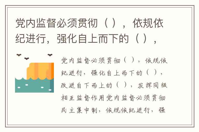 党内监督必须贯彻( ),依规依纪进行,强化自上而下的( ),改进自下而上的( ),发挥同级相互监督作用