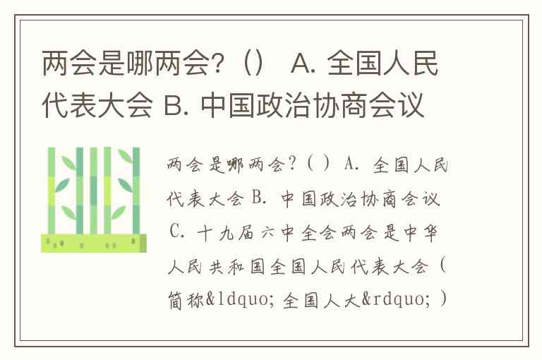 两会是哪两会?() A. 全国人民代表大会 B. 中国政治协商会议 C. 十九届六中全会