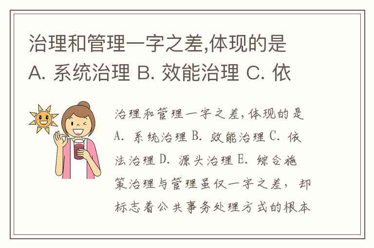 治理和管理一字之差,体现的是 A. 系统治理 B. 效能治理 C. 依法治理 D. 源头治理 E. 综合施策