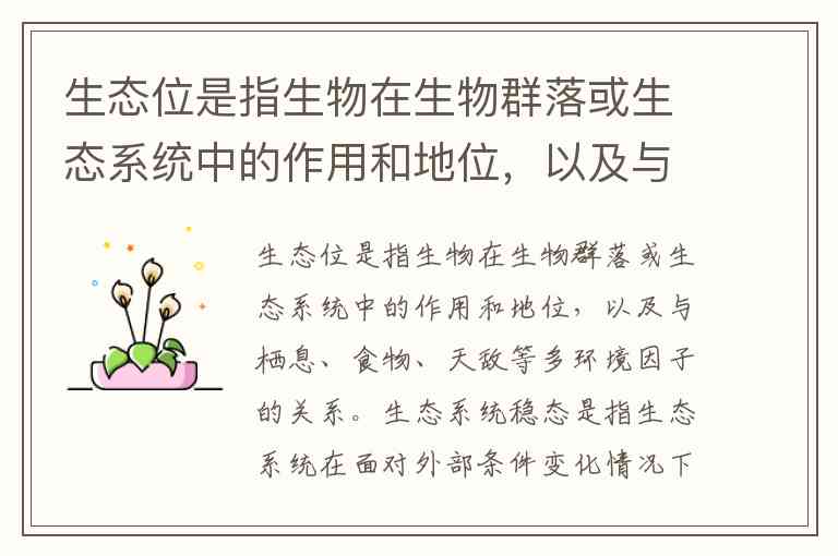 要判断各选项的正确性,需结合生态位与稳态的核心概念:生态位反映物种在生态系统中的功能地位及与环境的关系;稳态是系统在一定限度内的相对稳定状态,超出限度会失调。