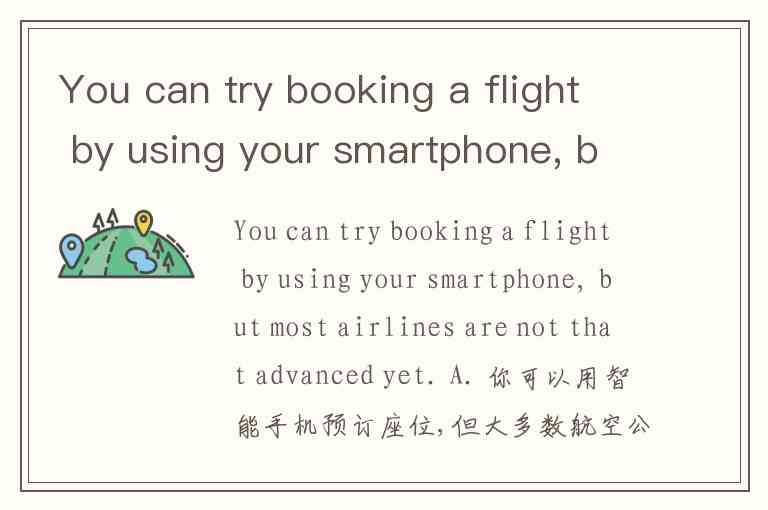 You can try booking a flight by using your smartphone, but most airlines are not that advanced yet. A. 你可以用智能手机预订座位,但大多数航空公司还未能提供这种服务。 B. 你可以尝试用智能手机订机票,但大多数航空公司还没有这么先进。 C. 你可以在飞行过程中使用智能手机,但是大多数航班都不允许这么做。