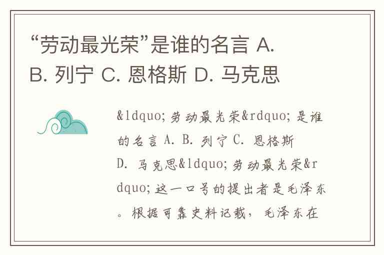 “劳动最光荣”是谁的名言 A. B. 列宁 C. 恩格斯 D. 马克思