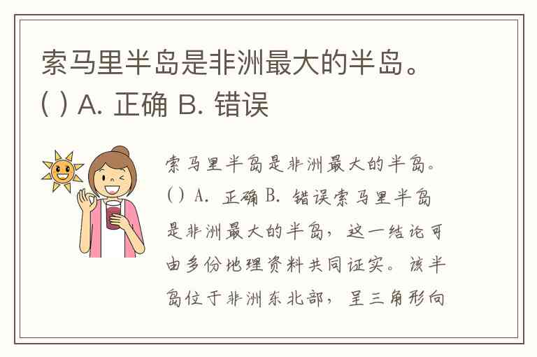 索马里半岛是非洲最大的半岛。( ) A. 正确 B. 错误