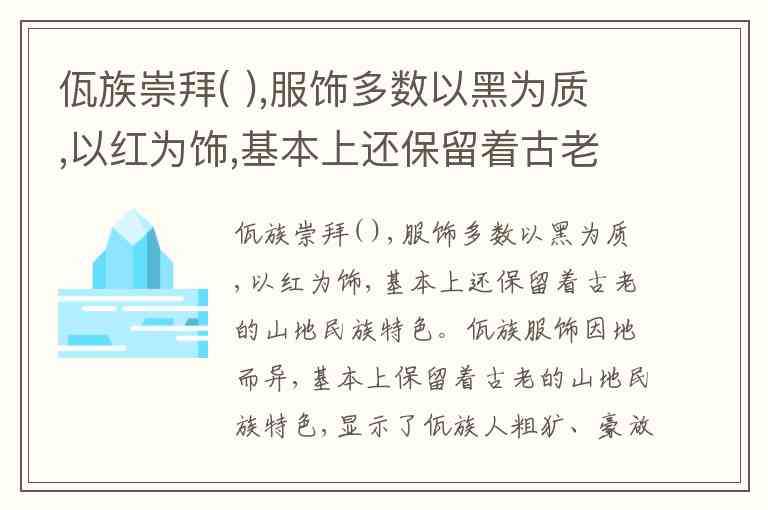 佤族崇拜( ),服饰多数以黑为质,以红为饰,基本上还保留着古老的山地民族特色。佤族服饰因地而异,基本上保留着古老的山地民族特色,显示了佤族人粗犷、豪放的坚强性格。 A. 红色和黑色 B. 红色和蓝色 C. 蓝色和黑色 D. 黑色和黄色