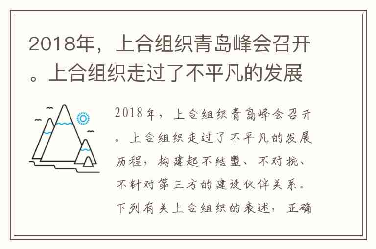 2018年,上合组织青岛峰会召开。上合组织走过了不平凡的发展历程,构建起不结盟、不对抗、不针对第三方的建设伙伴关系。下列有关上合组织的表述,正确的是( ) A. 成员奉行不与任何国家结盟的外交政策 B. 客观上有利于我国新时期的现代化建设 C. 新时期以联合国为中心的多边外交的重要成果 D. 前身是2001年成立的上海五国机制