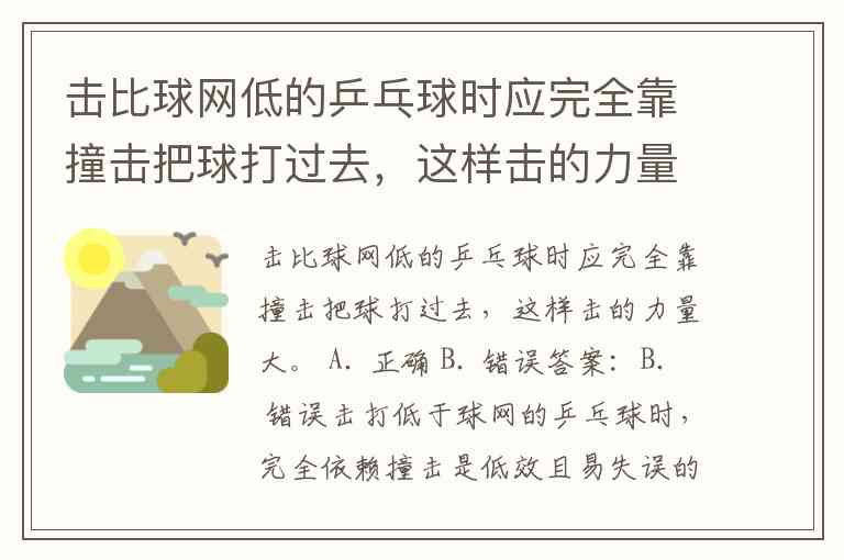 击比球网低的乒乓球时应完全靠撞击把球打过去,这样击的力量大。 A. 正确 B. 错误