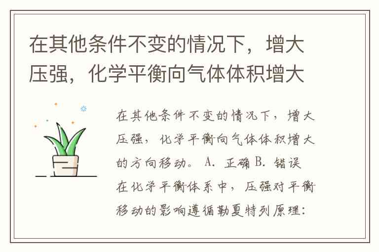 在其他条件不变的情况下,增大压强,化学平衡向气体体积增大的方向移动。 A. 正确 B. 错误