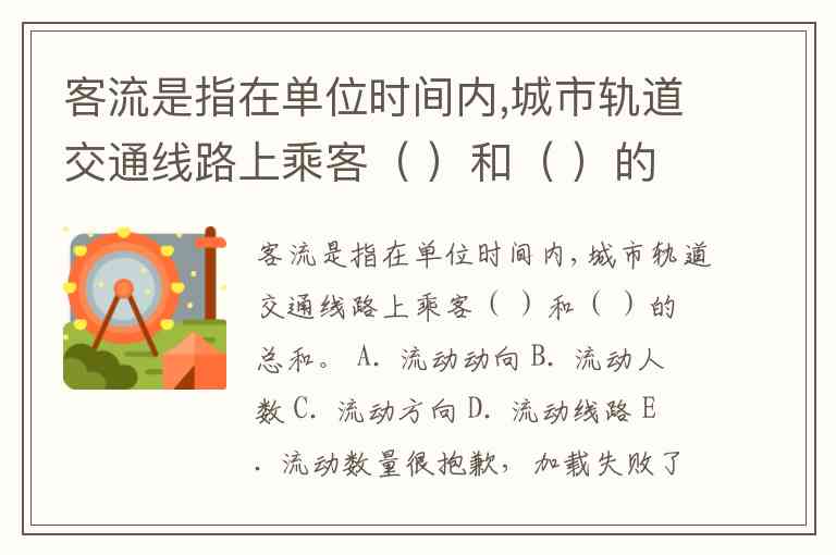 客流是指在单位时间内,城市轨道交通线路上乘客( )和( )的总和。 A. 流动动向 B. 流动人数 C. 流动方向 D. 流动线路 E. 流动数量