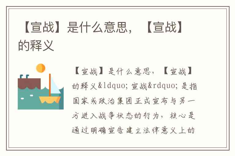 “宣战”是指国家或政治集团正式宣布与另一方进入战争状态的行为,核心是通过明确宣告建立法律意义上的战争关系。这一行为不仅具有军事属性,还受到国际法严格规范——1907年《关于战争开始的公约》(海牙第3公约)就明确要求,战争开始前必须有“预先而明确无误的警告”。