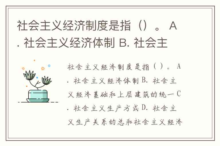 社会主义经济制度是指()。 A. 社会主义经济体制 B. 社会主义经济基础和上层建筑的统一 C. 社会主义生产方式 D. 社会主义生产关系的总和