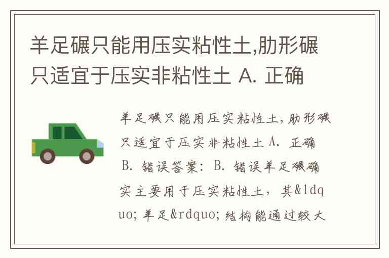 羊足碾只能用压实粘性土,肋形碾只适宜于压实非粘性土 A. 正确 B. 错误
