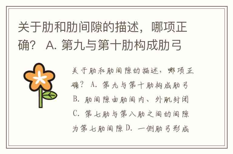 关于肋和肋间隙的描述,哪项正确? A. 第九与第十肋构成肋弓 B. 肋间隙由肋间内、外肌封闭 C. 第七肋与第八肋之间的间隙为第七肋间隙 D. 一侧肋弓形成向下开放的夹角叫剑肋角