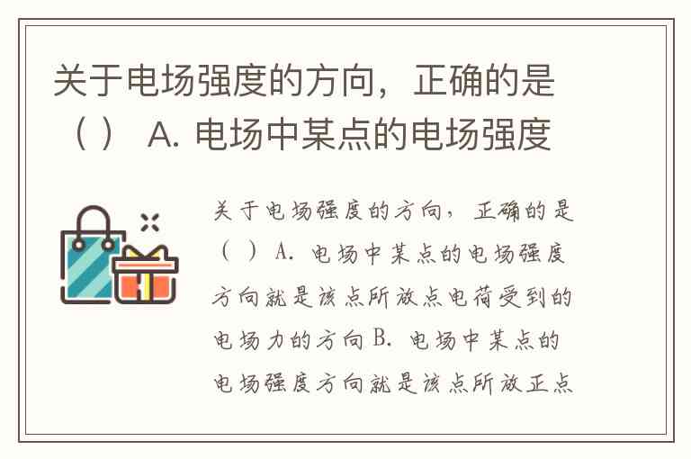 这一方向规定也体现在电场线的特性中:电场线的切线方向表示该点场强方向,正电荷沿切线方向受力,负电荷则相反。例如,正点电荷形成的电场中,场强方向沿径向向外;负点电荷的电场则沿径向向内。理解这一规定是分析电场力、电势差等电磁学问题的基础。
