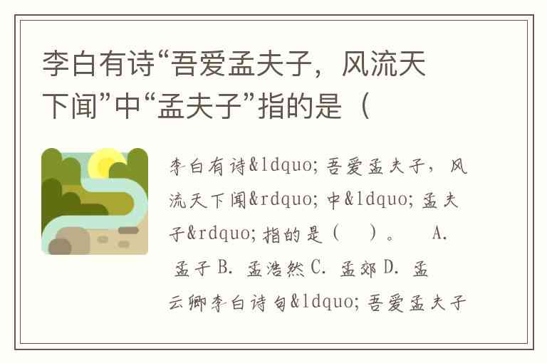 李白有诗“吾爱孟夫子,风流天下闻”中“孟夫子”指的是()。 A. 孟子 B. 孟浩然 C. 孟郊 D. 孟云卿