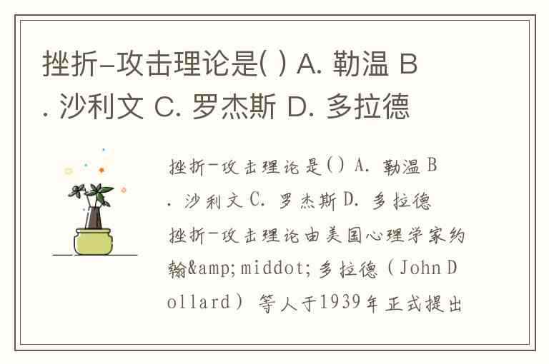 挫折-攻击理论是( ) A. 勒温 B. 沙利文 C. 罗杰斯 D. 多拉德
