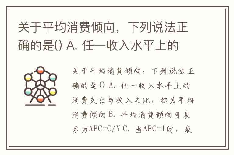 平均消费倾向(APC)是宏观经济学中衡量消费行为的基础指标,反映收入与消费的比例关系。以下分析各选项的正确性: