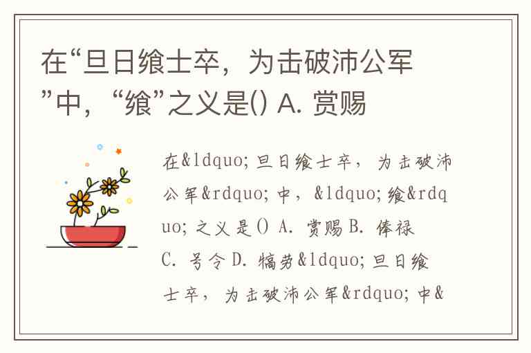 在“旦日飨士卒,为击破沛公军”中,“飨”之义是() A. 赏赐 B. 俸禄 C. 号令 D. 犒劳