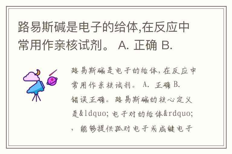 路易斯碱是电子的给体,在反应中常用作亲核试剂。 A. 正确 B. 错误