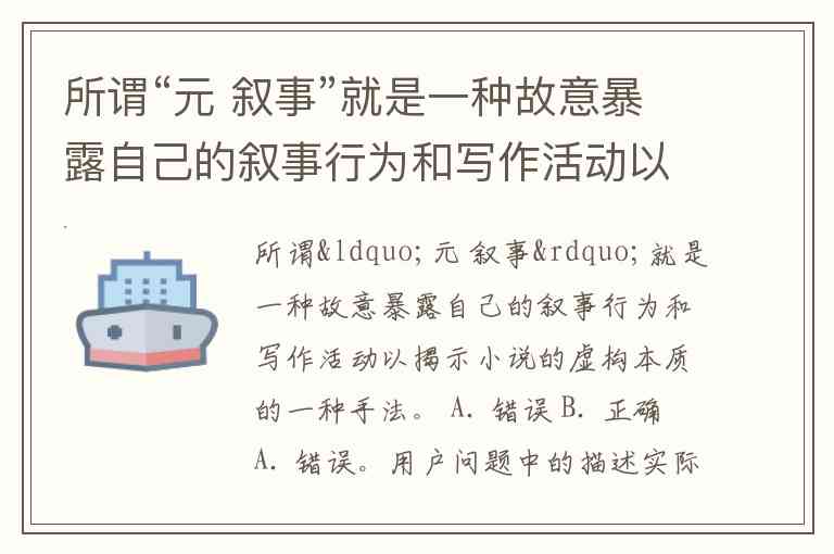 所谓“元 叙事”就是一种故意暴露自己的叙事行为和写作活动以揭示小说的虚构本质的一种手法。 A. 错误 B. 正确