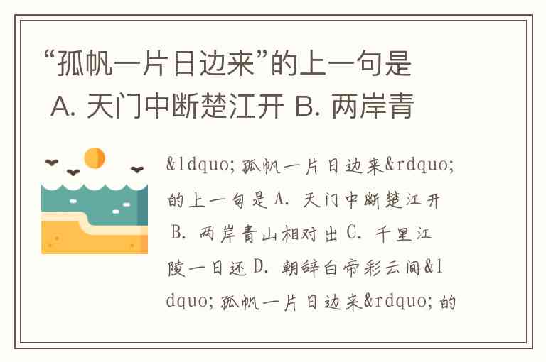 “孤帆一片日边来”的上一句是 A. 天门中断楚江开 B. 两岸青山相对出 C. 千里江陵一日还 D. 朝辞白帝彩云间