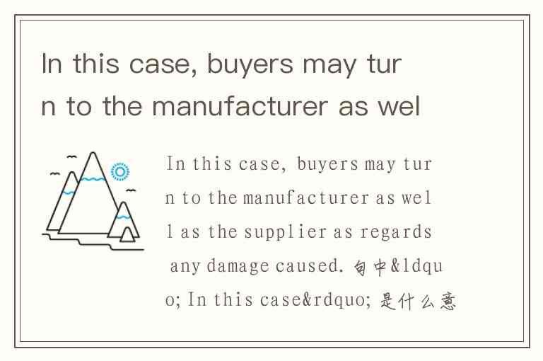 In this case, buyers may turn to the manufacturer as well as the supplier as regards any damage caused.句中“In this case”是什么意思? A. 在这种情况下 B. 假使 C. 既然 D. 尽管