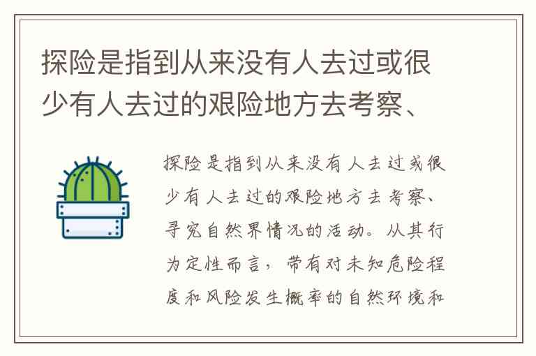 科考队员“深入罗布泊腹地采集水样和矿物标本”,罗布泊腹地是典型的“艰险少人之地”;目的是科学考察(寻究自然界情况),属于主动前往的探究行为。属于探险。