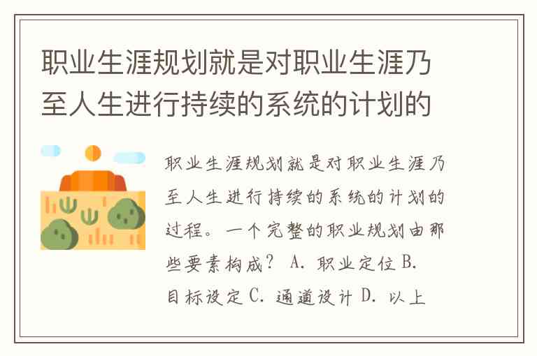 职业生涯规划就是对职业生涯乃至人生进行持续的系统的计划的过程。一个完整的职业规划由那些要素构成? A. 职业定位 B. 目标设定 C. 通道设计 D. 以上都是