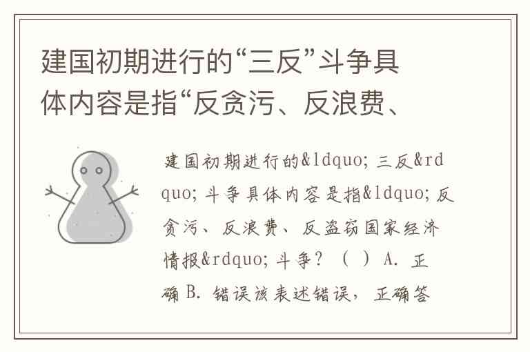 建国初期进行的“三反”斗争具体内容是指“反贪污、反浪费、反盗窃国家经济情报”斗争?( ) A. 正确 B. 错误