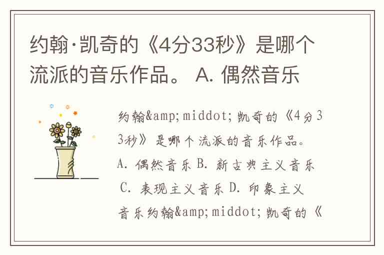 约翰·凯奇的《4分33秒》是哪个流派的音乐作品。 A. 偶然音乐 B. 新古典主义音乐 C. 表现主义音乐 D. 印象主义音乐