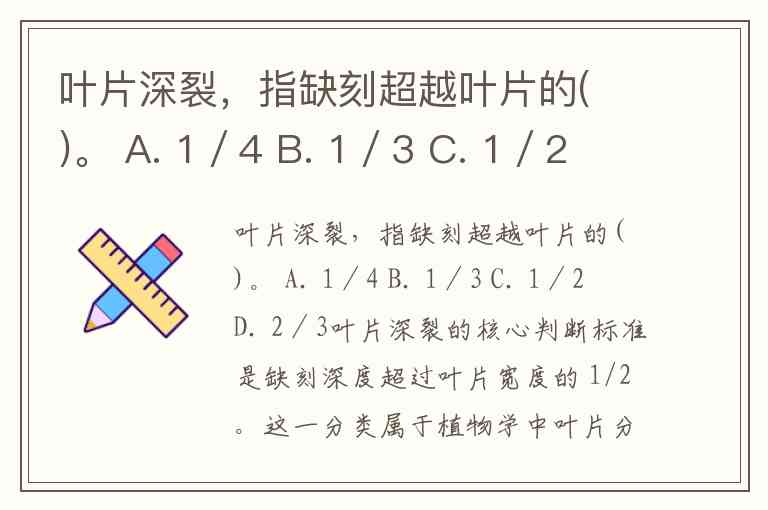 综上,本题答案为 C. 1/2。这一标准不仅用于植物分类鉴定,也影响对叶片功能的理解——深裂结构通常能减少叶片间重叠,优化光照捕获效率。你还能想到哪些以深裂叶片为显著特征的植物呢?