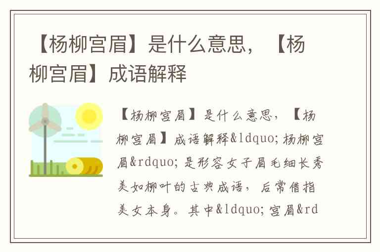 【杨柳宫眉】是什么意思,【杨柳宫眉】成语解释