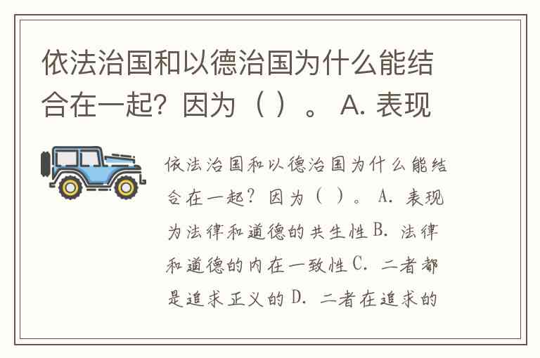 依法治国和以德治国为什么能结合在一起?因为( )。 A. 表现为法律和道德的共生性 B. 法律和道德的内在一致性 C. 二者都是追求正义的 D. 二者在追求的价值目标上是一致的