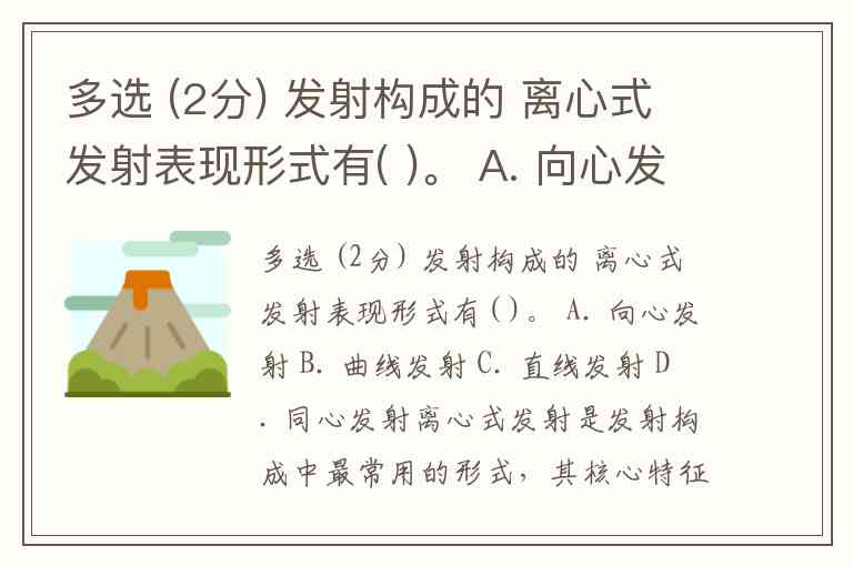 多选 (2分) 发射构成的 离心式发射表现形式有( )。 A. 向心发射 B. 曲线发射 C. 直线发射 D. 同心发射