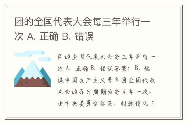 团的全国代表大会每三年举行一次 A. 正确 B. 错误