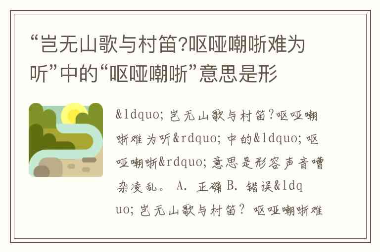 “岂无山歌与村笛?呕哑嘲哳难为听”中的“呕哑嘲哳”意思是形容声音嘈杂凌乱。 A. 正确 B. 错误