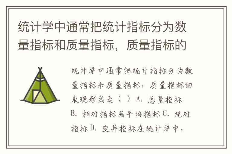 统计学中通常把统计指标分为数量指标和质量指标,质量指标的表现形式是( ) A. 总量指标 B. 相对指标或平均指标 C. 绝对指标 D. 变异指标