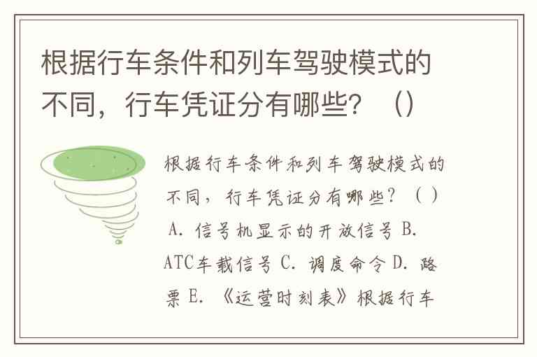 根据行车条件和列车驾驶模式的不同,行车凭证分有哪些?() A. 信号机显示的开放信号 B. ATC车载信号 C. 调度命令 D. 路票 E. 《运营时刻表》
