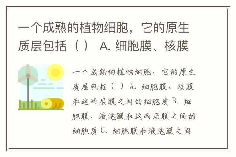 成熟植物细胞的原生质层是指细胞膜、液泡膜以及两层膜之间的细胞质,这一结构相当于半透膜,在渗透作用(如质壁分离)中发挥关键作用。具体来说,它不包含细胞壁、细胞核和液泡内的细胞液,但涵盖细胞质中的细胞器(如线粒体、叶绿体)和细胞质基质。
