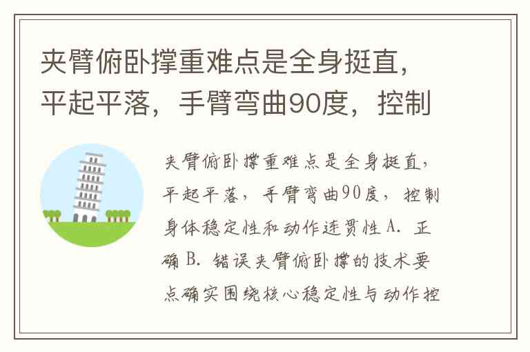 夹臂俯卧撑重难点是全身挺直,平起平落,手臂弯曲90度,控制身体稳定性和动作连贯性 A. 正确 B. 错误